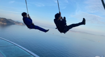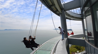 공중에 강화유리를 설치해, 하늘과 바다 사이를 둥둥 떠서 걸어가는 느낌이 있다고 하며 2층 카페 클리프힐 외벽 난간을 걷도록 만들어 인기예요. 담력이 센 참가자는 발로 난간을 힘껏 밀어 바다 쪽으로 몸을 던져서 그네를 타기도 하는데 튼튼한 밧줄로 연결돼 있어 안전하며 전망대에서 계단을 걸어 내려가면 바다가 나와 풍경이 아름답습니다. 전망대 입장은 무료, 스카이워크 체험은 유료예요.