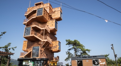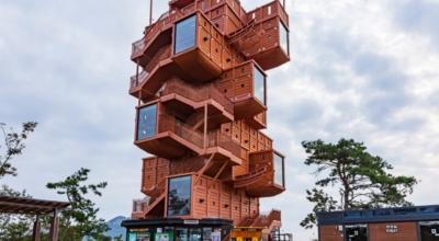 하지만 정상에 올라오면 이순신 장군이 명량대첩에서 승리 후 전열을 가다듬었던 고하도의 수려한 해상 풍광을 충무공의 얼을 담은 13척의 판옥선 모형을 격자형으로 쌓아 올린 전망대에서 감상할 수 있으며 2층부터 5층까지는 전망대 또는 목포관광을 소개하는 전시 공간이고 5층 전망대는 사방이 탁 트인 구조로 되어있다고 하며, 한쪽에는 판옥선의 지붕 같은 주조물이 있어 비나 뜨거운 햇빛을 피하여 구경할 수 있겠습니다.