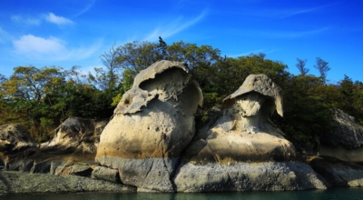 남농기념관 건너편에는 신안유물을 전시한 해양유물전시관이 있으며 갓바위를 지나면 하구언 공사로 발생된 영산호가 있습니다. 영산호는 동양 최대의 호수로 방조제의 길이만도 4.3㎞에 달하며 영산호의 조성은 자체의 관광객 유치 효과뿐만 아니라 영암을 포함한 7개 군과의 해상운송을 육상운송으로 바꾸어 다른 군과의 연계관광을 보다 용이하게 해주었다는 점에서 의의가 크다고 할 수 있습니다.