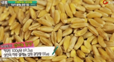 카무트가 유명하게된 것은 셀레늄 이란느 물질이 많이 포함되어 있기 때문이죠. 아주 많은 셀레늄으로 암 세포 성장을 억제시켜 주며 발병 가능성을 감소시키고 발암 물질의 활성화를 차단하는 효과를 갖고 있답니다. 항상화 물질인 셀레늄 물질은 가지가지 암 예방을 60% 감소하게 만들어줘요.