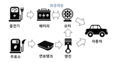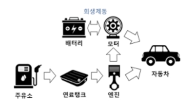 사실 하이브리드 차량과 내연기관 차량의 기능 중 가장 두드러진 차이점 중 하나가 회생제동기술입니다. 회생제동은 전기의 핵심적인 기술 중 하나로 차량의 운동에너지를 마찰 에너지로 손실시키지 않고 배터리의 전기에너지로 치환해서 전체 효율을 높게 하는 기술입니다.