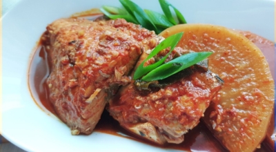 고등어 1마리, 무 400g, 대파 1 뿌리, 양파 1/2개, 환 만식초 2 큰술, 진간장 1 큰술, 정수물 400ml