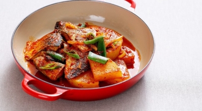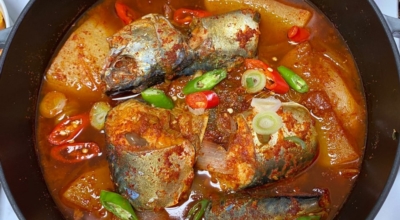 소스를 만들고 필수로 10분간 실온에 놓아 주세요. 양념들끼리 이 짧은 시간 내에도 숙성이 이뤄져요. 확실히 맛이 다르므로 필수로 드셔 보셔요. 눈이 번쩍이실 겁니다. 정수물 400ml와 무, 진간장 한 큰술을 넣고 10분간 졸여 주시고 그 위에 고등어를 살이 부서지지 않게 천천히 넣어주며 양념도 모두에게 넣어주어요. 양파와 대파를 넣어준 뒤 국자로 국물을 틈틈이 끼얹어 주세요 10분간 끓이면 완성이에요.