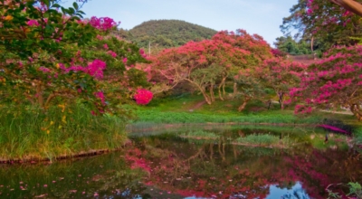 여름 담양에는 진분홍빛 향연이 펼쳐지는데 그중 압도적인 풍경을 자랑하는 곳이 담양 명옥헌 원림으로 옛 조선 시대 대표 민간정원이었던 장소로 알려저 있어요. 수령 100년이 넘은 배롱나무 20여 그루가 그림처럼 들어앉은 정자와 푸른 소나무, 붉은 꽃이 만발한 배롱나무, 정자 앞 연못이 한폭의 그림 같지요. 정자 옆에 계곡이 흐르는데, 옥이 부딪히는 소리가 난다고 하여 명옥헌이라고 하는 이름을 얻었다고 전해지고 있답니다. 정자 뒤에는 ‘명옥헌 계축’이라고 새긴 바위가 있는데 우암 송시열이 썼다고 전해내려 오고 있어요.