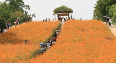 입이 떡 벌어질 만큼 넓게 핀 황화 코스모스는 사진으로 다 담을 수 없을 정도로 많고 아름다운데, 화창한 가을 하늘 날씨와 어우러지면 그야말로 절경이 따로 없어 평원이라 그늘을 피할 수 있는 공간이 없으므로, 맑은 날 황화 코스모스 꽃밭을 오래 즐기기 위해서는 모자나 양산이 필수라고 하며 이용 시간은 매일 09시부터 18시 30분까지니 참고하시길 바라겠습니다.