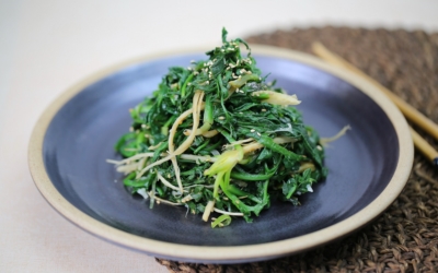 6. 데친 냉이는 찬물에 즉시 넣어 열기를 빼준 후 물기를 제거해줘요.