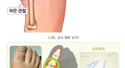 바람이 스치기만 해도 아프다는 가장 유명한 통증 질환이지요. 현대화에 들어서 식습관의 변화에 의해 매년 환자수가 급증하고 있다고 해요. 체내 혈액 내 요산의 수치가 높아지면서 관절 사이사이, 연골, 힘줄 그리고 주변조직등에 요산염 결정이 침착되는 대사질환이라고 해요. 극심한 통증과 함께 뼈의 변형을 일으키는 것이 특징이며 요즘 성인들에게 자주 나타나는 하나의 질병을 발전했습니다.