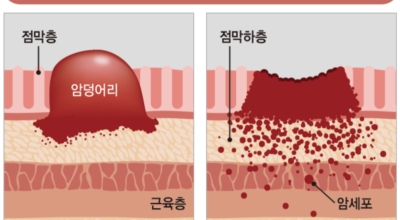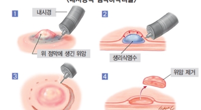 위암 1기는 위 점막과 점막 하층에 암세포가 침범한 경우이지요. 이때부터 위암 초기증상을 체감 할 수 있어요. 위암 4기는 근육층까지 암세포가 침범해 위뿐만 아니라 다른 장기까지 전이된 상태이지요. 위암 초기증상을 놓치고 발견하지 못하면 위를 절제해 소장과 연결하는 수술을 해야합니다. 조기 발견 시엔 절제 없이 내시경 시술로 제거할 수 있어요. 식도를 통해 내시경을 주입해서 절제할 부위 주변에 생리식염수를 넣은 다음 부풀어 오르게 만들어요. 내시경에 장착된 전기 칼을 활용하여 암세포가 있는 부위를 절제하면 돼요. 떼어낸 자리는 상처가 생겼다가 아물게 돼요.