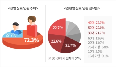 국내 통계를 의하면 갑상선 기능 항진증을 경험했던 환자들 중 대다수가 집중력이 저하되고 신경이 예민해지는 증상 또는 불면증을 겪었다고 해요. 더불어 안절부절 못하고 두근거리는 느낌이 들기도 하며 조그마한 일에도 감정조절이 되지 않아 어려움을 느끼게 돼요. 또한 흔하게 갑상선에 장애가 생기는 나이는 중장년층에게만 생기는 병이라고 알지만 최근 소아 청소년기에서도 발생 되는 경우도 있어요.