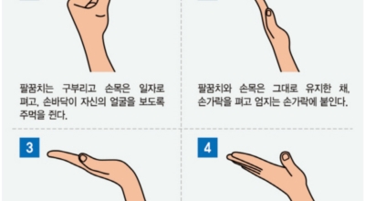 - 두 손을 깍지 끼고 손등이 하늘로 향하게 한 다음 물결치듯 손목 움직이지요.