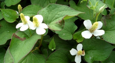 어성초는 이러한 생선 비린내 같은 특유의 냄새로 인해 음식 재료로 널리 쓰이지 않지만 인도와 베트남 음식에서는 인기 있는 식자재 중 한가지이지요. 한국에서 옛날부터 염증을 다스리는 약재로 이용했는데 어성초가 요즘에는 탈모에 좋다는 소문이 퍼지면서 품귀 현상을 일으킬 정도로 매우 귀한 약재이기도 합니다.